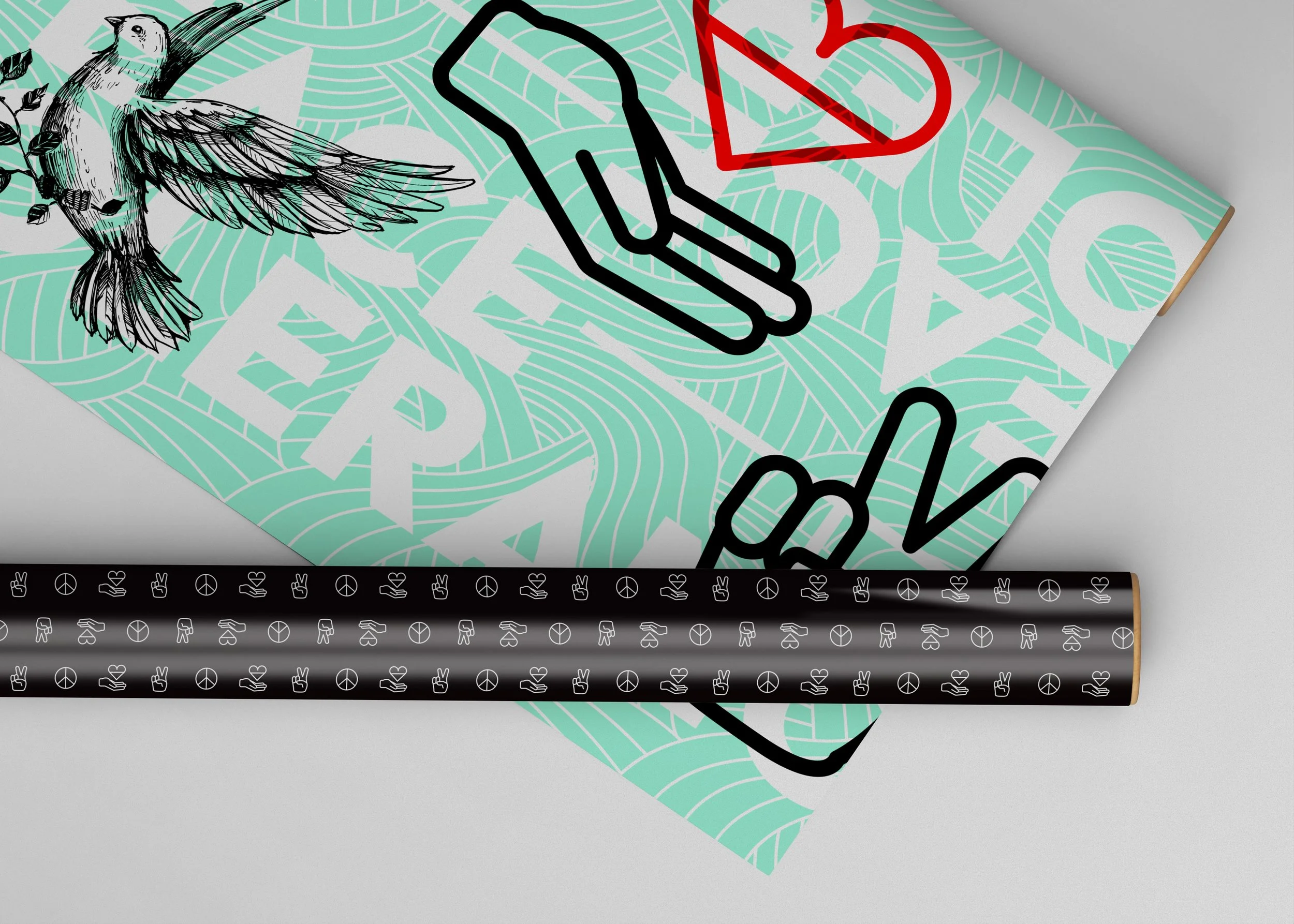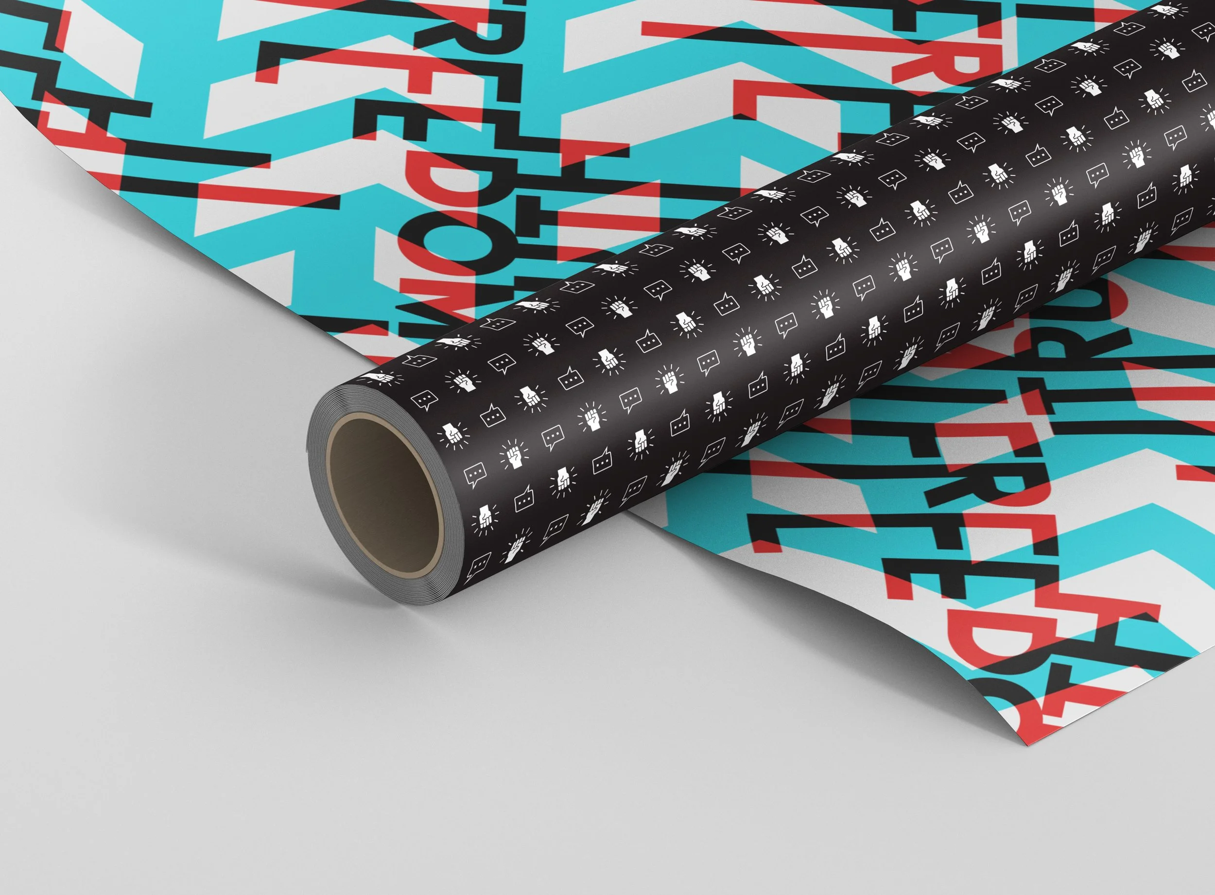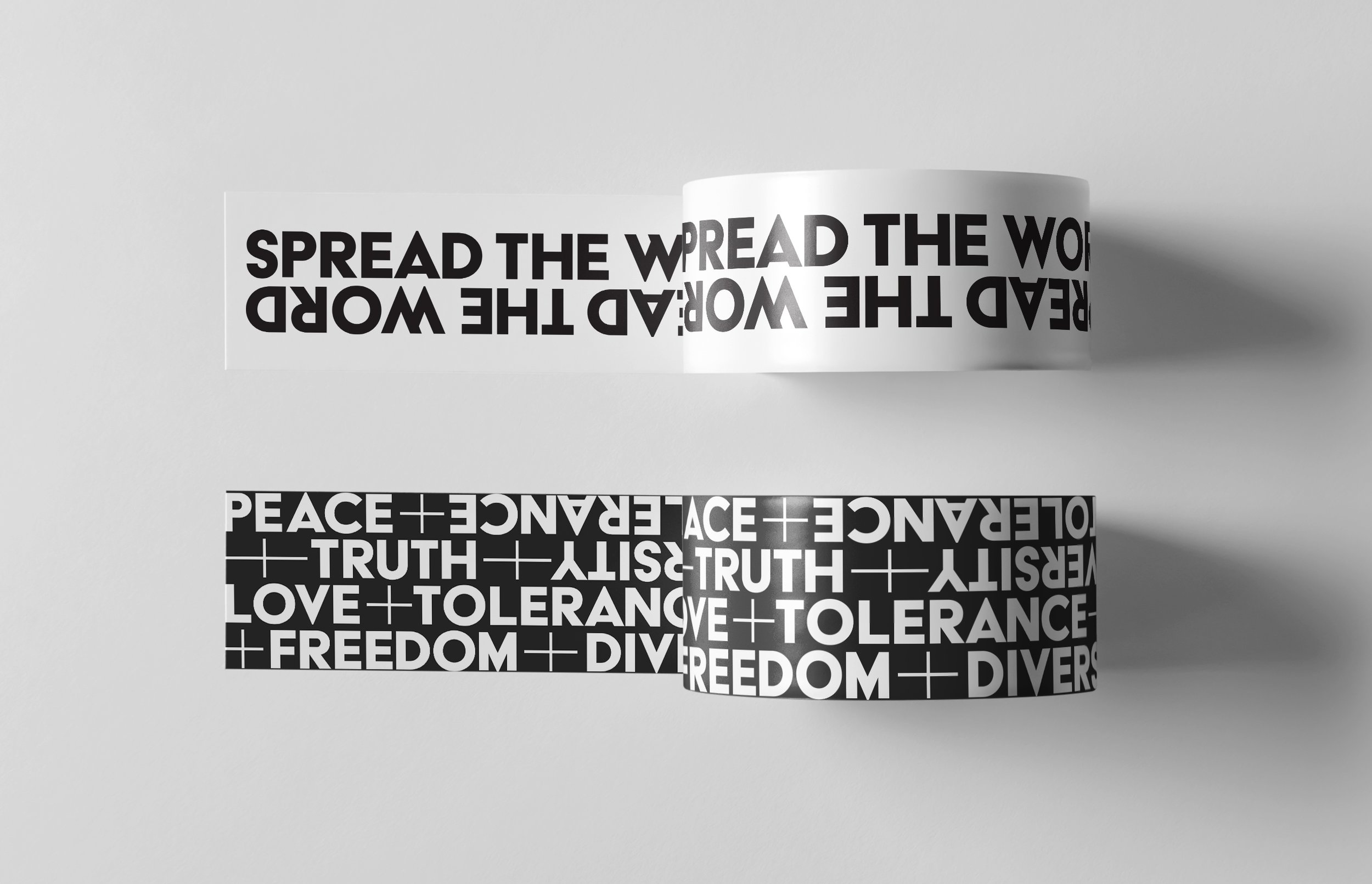 Design for First Look Media’s 2017 holiday season gift set. Created inspiration wrapping paper with the words “Truth + Freedom,” “Peace + Tolerance” and “Peace + Diversity.” Along with the wrapping paper, recipients received a roll of tape with the same inspirational words to secure their gifts. For the packaging, a black shipping tube was used and sealed with a “Spread the Word” sticker. A fun, stop motion digital video was also filmed to inspire viewers to spread positive words during the holiday season.